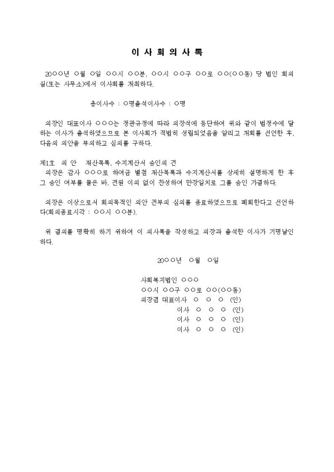 9,000원/월사회복지법인 변경등기신청서(자산총액변경) [첨부서류 1] 이사회의사록입니다.