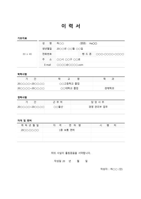 처음으로 취업 준비를 하는 대학 졸업예정자나 신입 구직자에게 최적화된 기본 양식