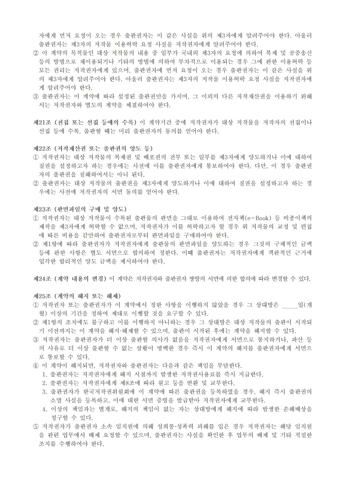 9,000원/월웹소설 분야_표준계약서_웹소설 출판권 설정계약서 서식입니다. 웹소설 분야 사업자 및 저작자 등 이해관계자가 공정한 계약을 체결하는 것을 지원하기 위해 작성된 표준 계약서 입니다.※ 출처 : 문화체육관광부 홈페이지 [자료공간]
