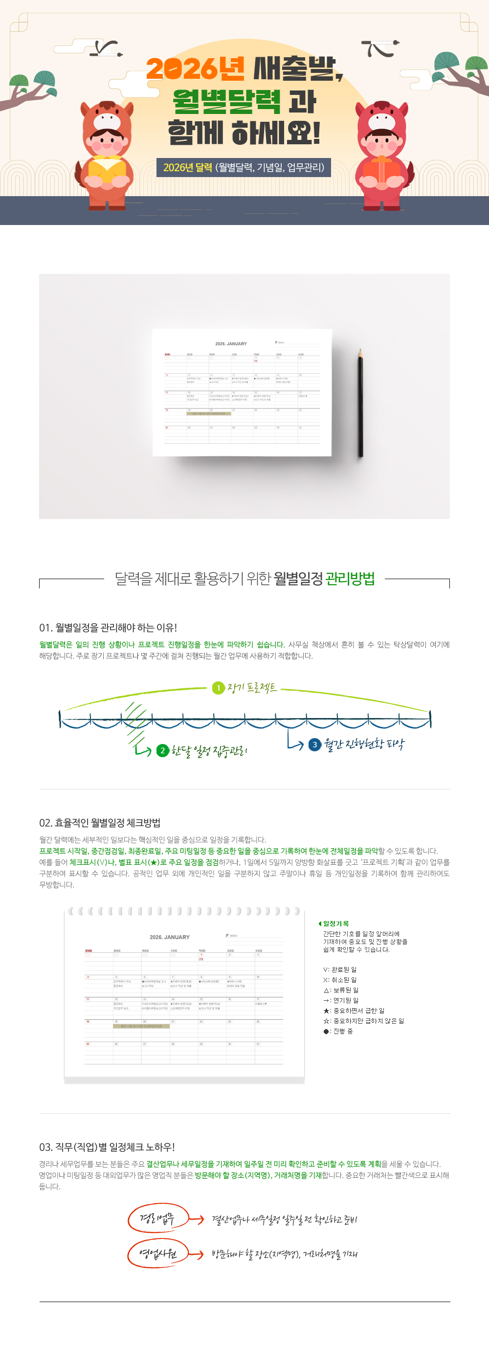 2026년 달력(월별일정,기념일,업무관리) 서식입니다. 2026년 엑셀 달력 서식은 월별 일정을 체계적으로 정리할 수 있도록 돕고, 중요한 기념일들을 쉽게 표시하여 개인적인 이벤트 관리를 용이하게 합니다. 이와 더불어 업무 관련 일정을 효율적으로 기록하고 추적할 수 있는 기능을 제공하여, 개인 생활과 직업 활동 모두에서 완벽한 균형과 관리를 지원합니다.