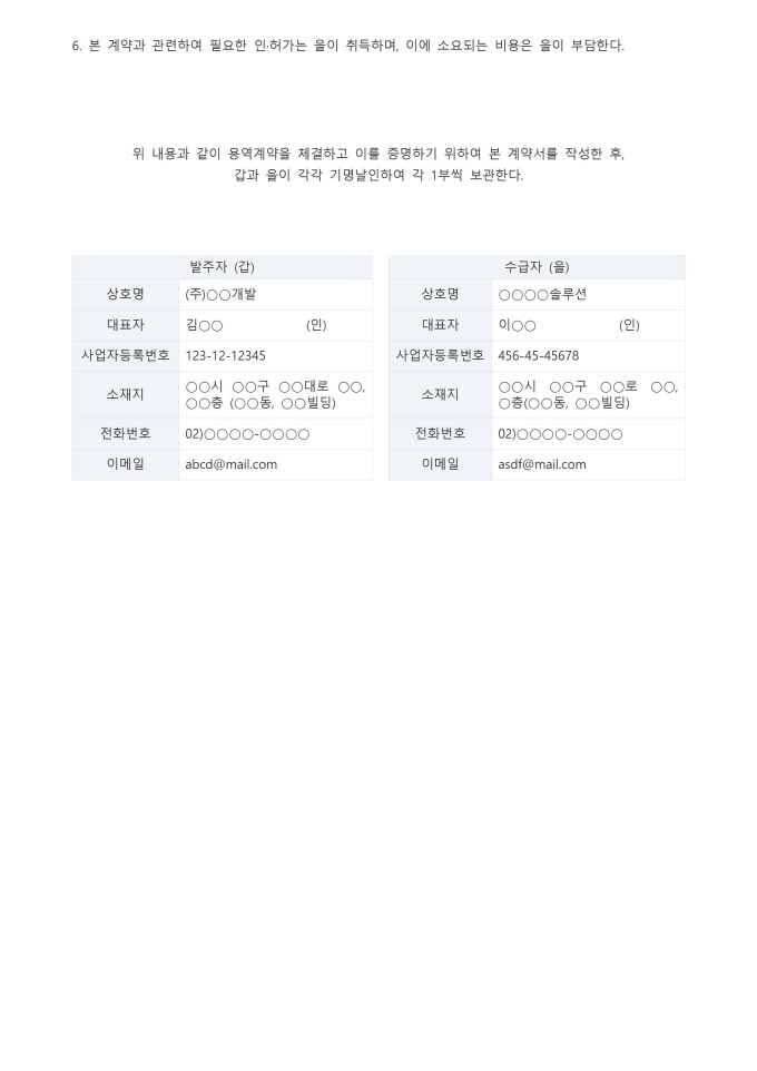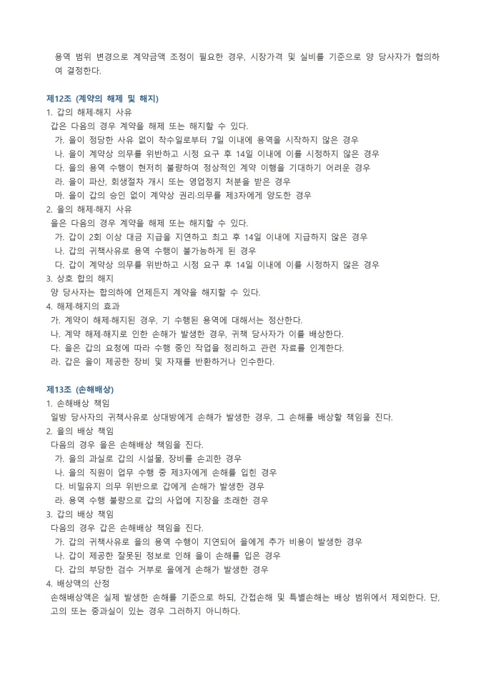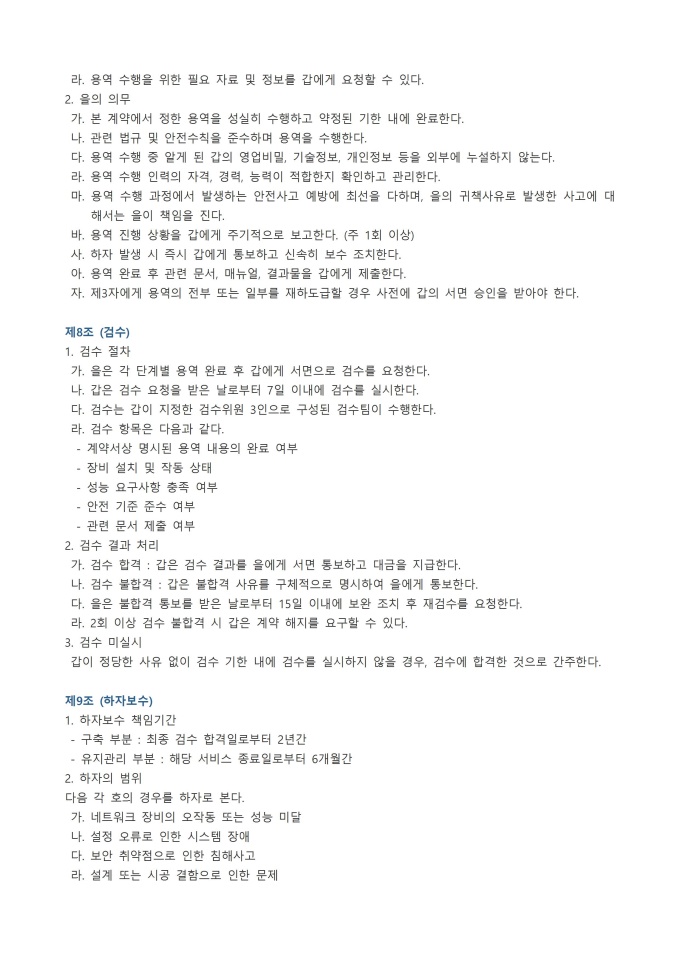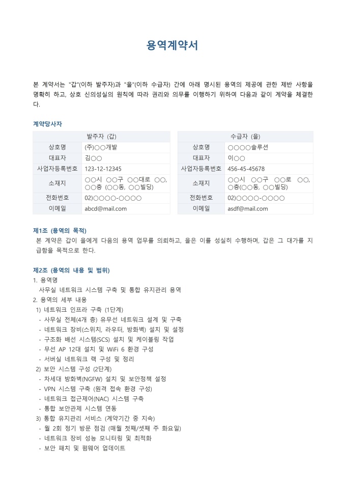 9,000원/월용역계약서 서식입니다. 용역계약서는 특정한 일의 완성이 아닌 노무의 제공 자체를 목적으로 하는 계약으로, 발주자(갑)가 수급자(을)에게 일정한 용역의 제공을 의뢰하고 그 대가를 지급하는 내용을 담았습니다.
