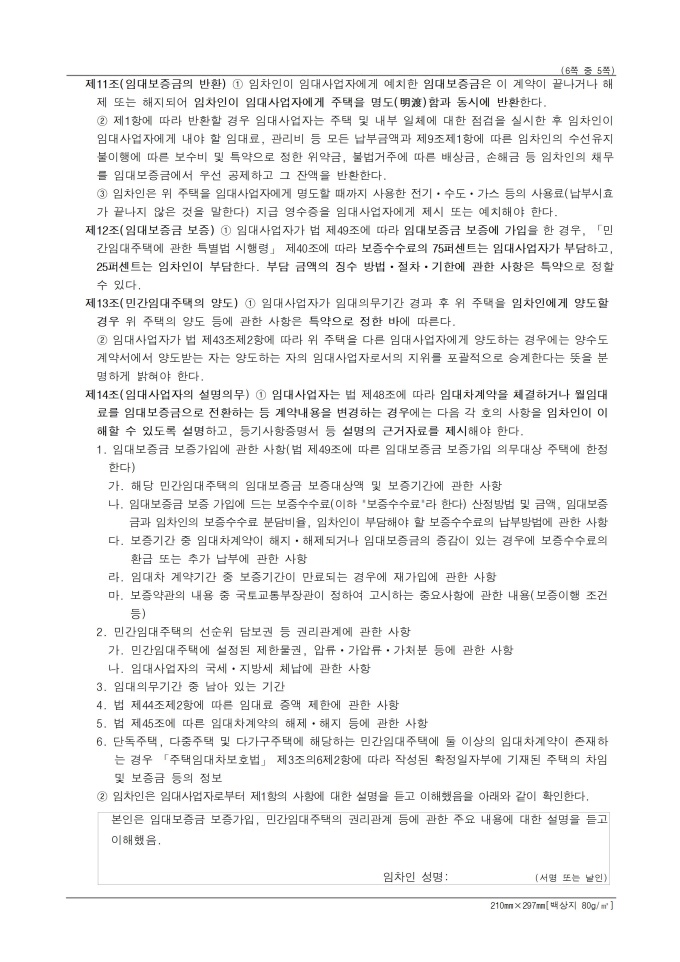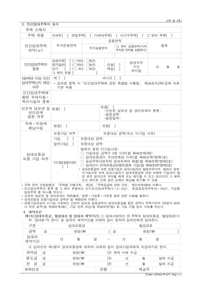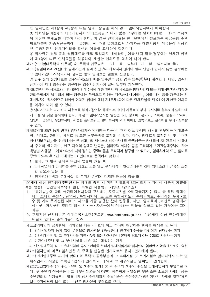 표준임대차계약서 입니다. 해당 서식은 임대사업자와 임차인이 임대차계약을 체결하고 이를 증명하기 위해 계약서 2통을 작성하고 각각 날인한 후 1통씩 보관해야 합니다. 민간임대주택에 관한 특별법 시행규칙 [별지 제24호서식] <개정 2025. 10. 31>