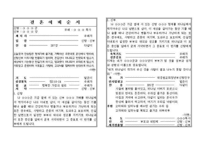 9,000원/월기독교에서 결혼예배를 하는 순서가 기록된 양식입니다.