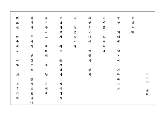 9,000원/월결혼식에 참석한 귀빈께 드리는 식대봉투안에 넣는 내지양식입니다.