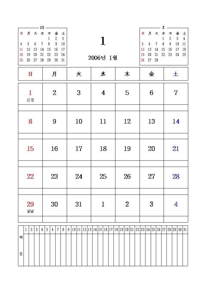 2006년 달력(일별응용메모형)