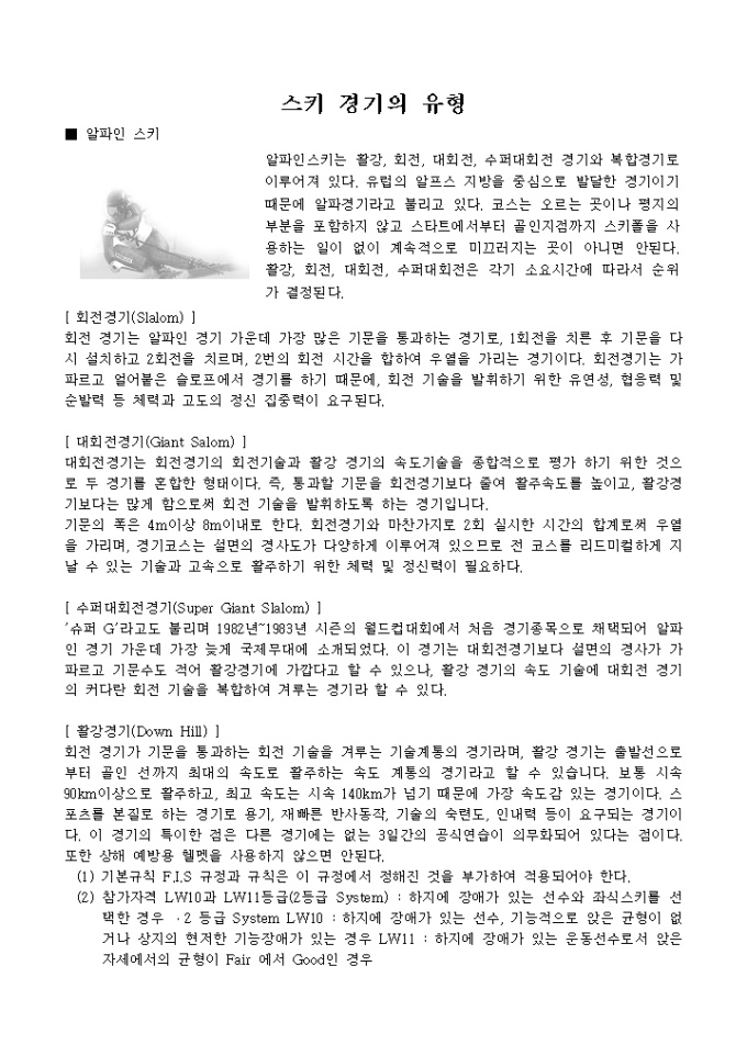 9,000원/월스키 경기의 유형입니다. 겨울에 가장 많이 찾는 스포츠로서 스키 경기의 유형을 알기 쉽도록 설명해놓은 서식입니다.