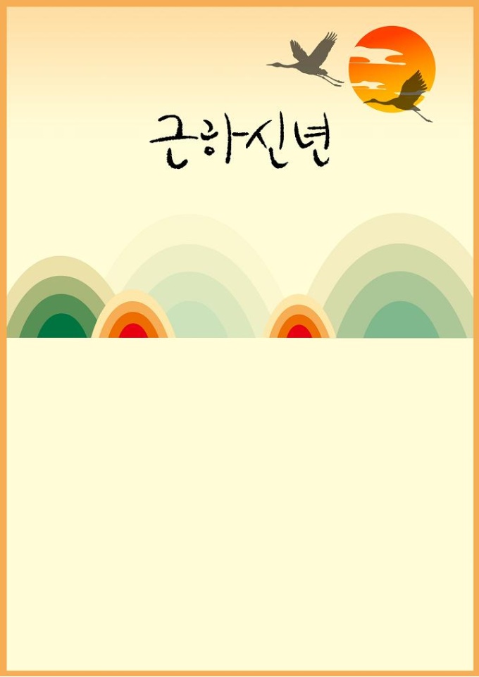 연하장 양식입니다. 병풍모양으로 근하신년과 행복을 염원하는 까치로 구성되어 있습니다.