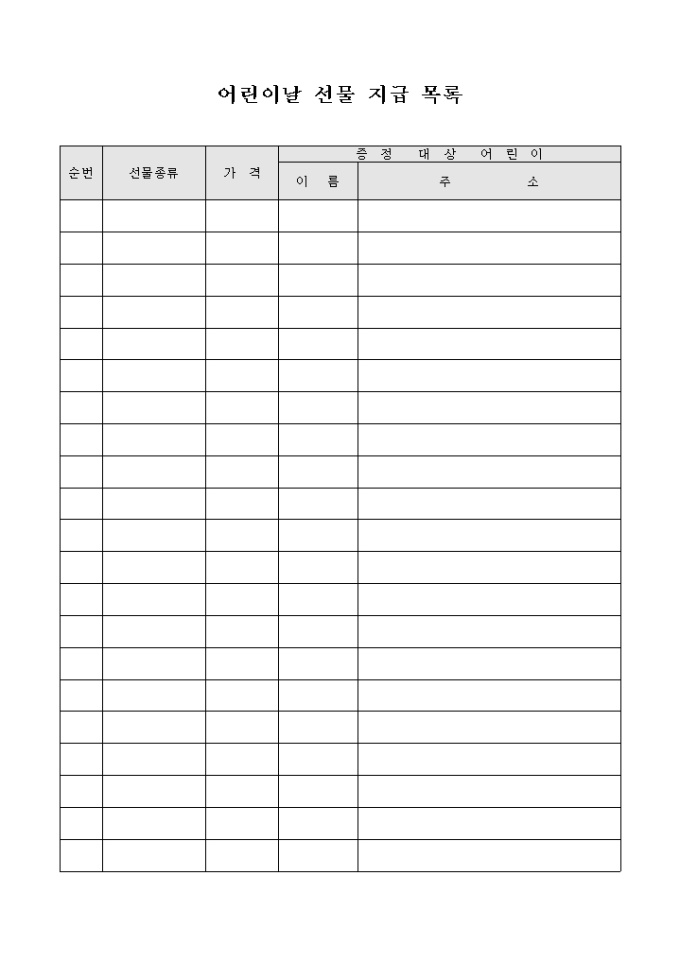 9,000원/월어린이날 선물 지급 목록 입니다.