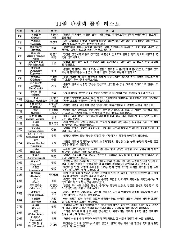 9,000원/월11월 탄생화 리스트와 꽃말 내용이 있는 서식입니다.
