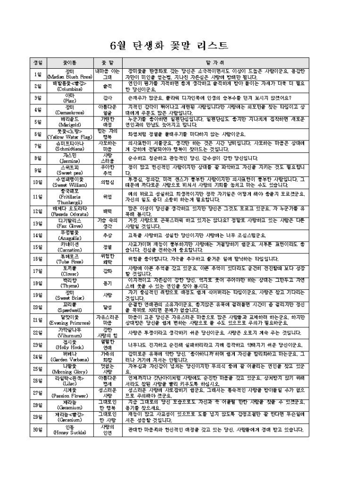 9,000원/월6월 탄생화 리스트와 꽃말 내용이 있는 서식입니다.