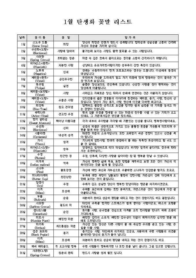 9,000원/월1월 탄생화 리스트와 꽃말 내용이 있는 서식입니다.