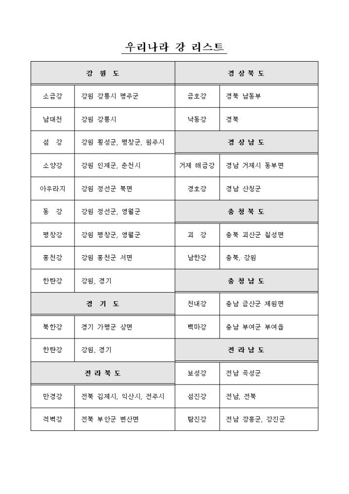 9,000원/월우리나라에 있는 강 이름과 주소를 적어놓은 서식입니다.