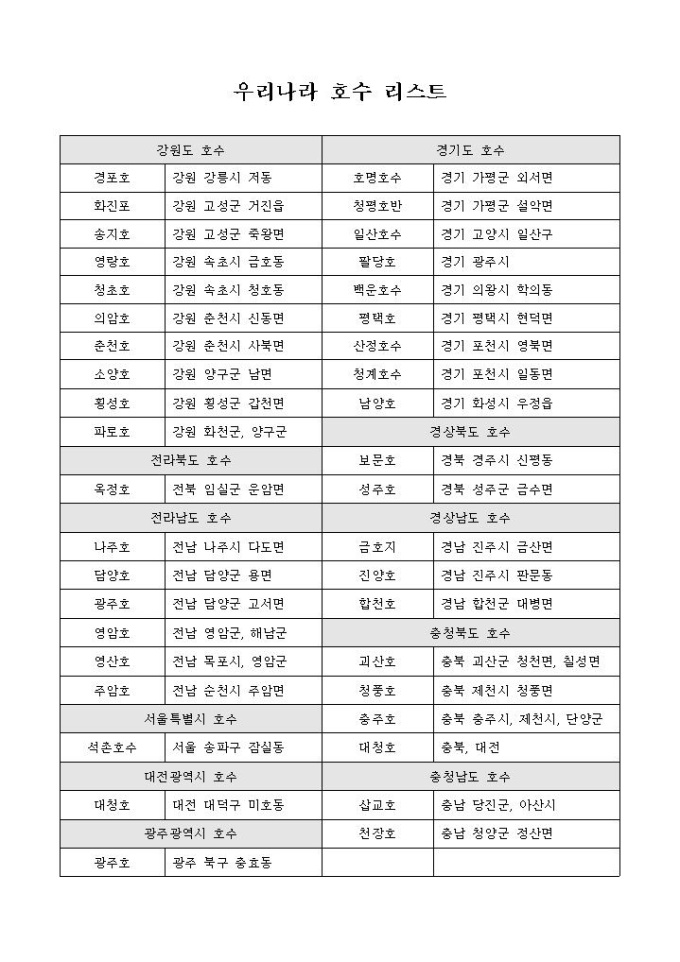 9,000원/월우리나라에 있는 호수들을 지역별로 호수명과 주소로 정리해 놓은 서식입니다.
