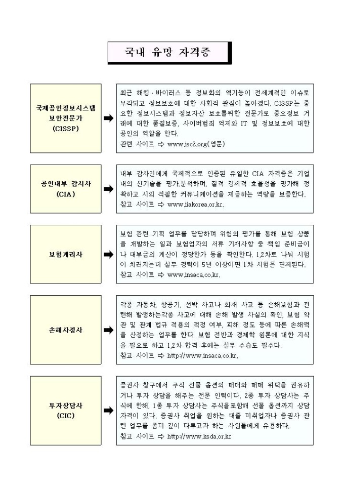 국내 유망 자격증 종류와 해당 자격증에 대한 내용을 확인할 수 있는 국내 유망 자격증 리스트 양식입니다.