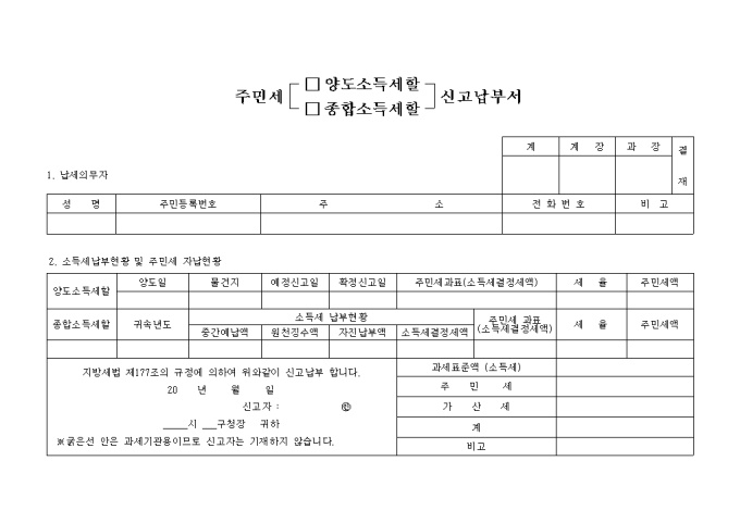 주민세(양도소득세할, 종합소득세할)신고납부서