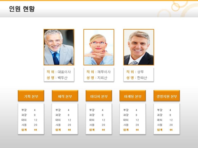 심플한 사각형모양의 조직도 입니다. 다양한 사업계획서에 활용하실 수 있습니다.