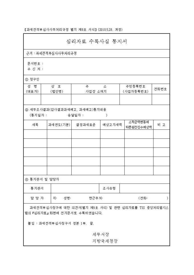 심리자료 수록사실 통지서