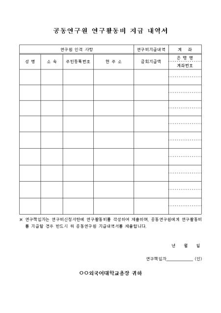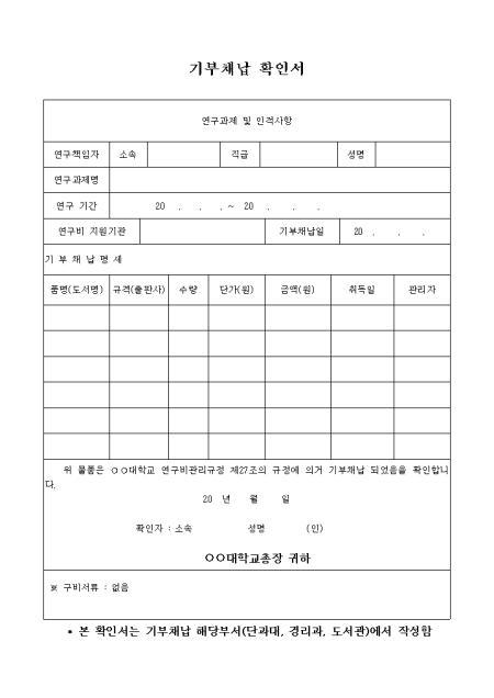 연구비 수입 입금 및 간접연구경비 수입결의서