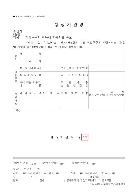 과점주주의 취득세 과세자료통보(행정자치부령 지방세법 시행규칙_2016.12.30)