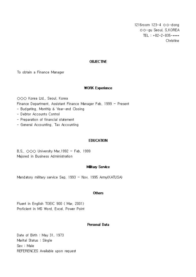 [영문이력서, resume]Finance Manager(재무관리자)_경력