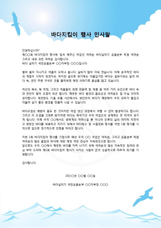 바다지킴이 행사 지부장 인사말