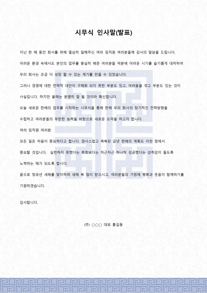 시무식 인사말(발표)