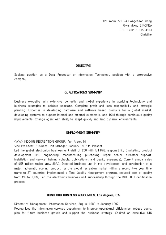 [영문이력서, resume]Data Processor(PM, 연구지원, 기획)_경력