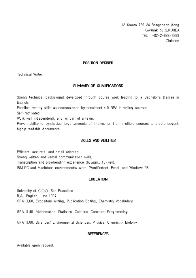 [영문이력서, resume]작가_경력