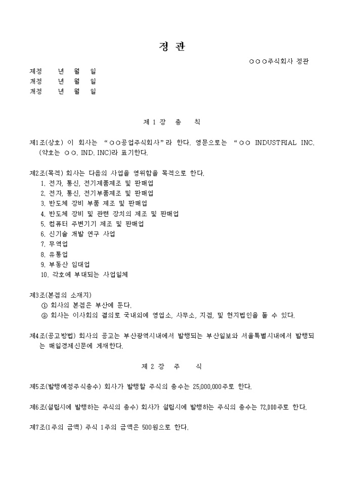 카테고리 샘플 기업일반 정관