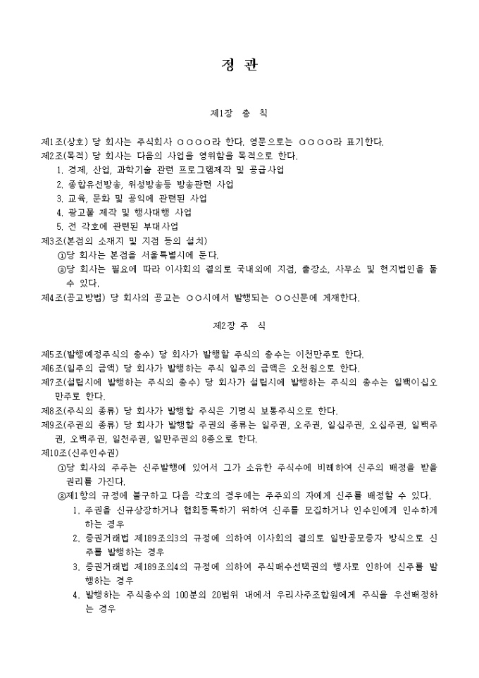 카테고리 샘플 기업일반 정관