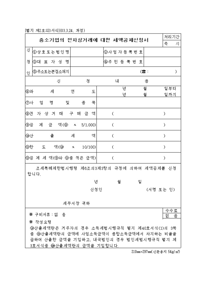 중소기업의전자상거래에 대한 세액공제신청서(제2호의3)(2003.3.24. 개정)