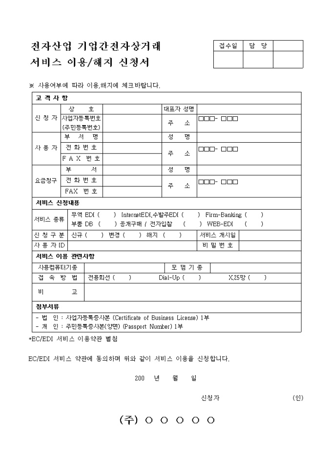 전자산업 기업간전자상거래 서비스 이용해지 신청서