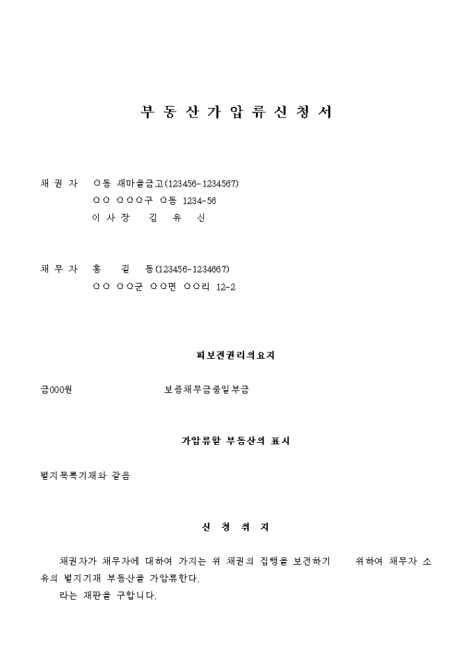 부동산 가압류신청서(회사임원의 신원보증인으로서의 보증채무금)