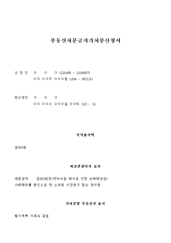 부동산 처분금지 가처분 신청서(약속어음 배서로 인한 손해배상금)