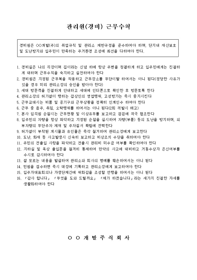 관리원(경비)근무수칙