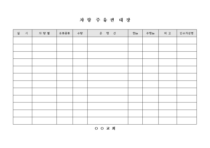 교회 차량 주유권 대장