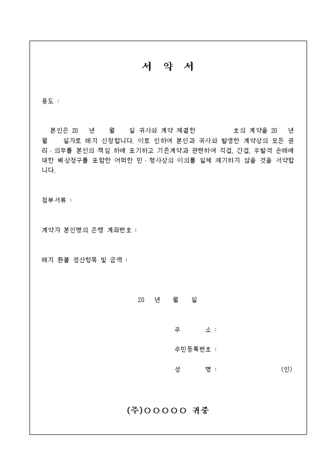엔터테인먼트몰 서약서(임대차 계약 해지용)