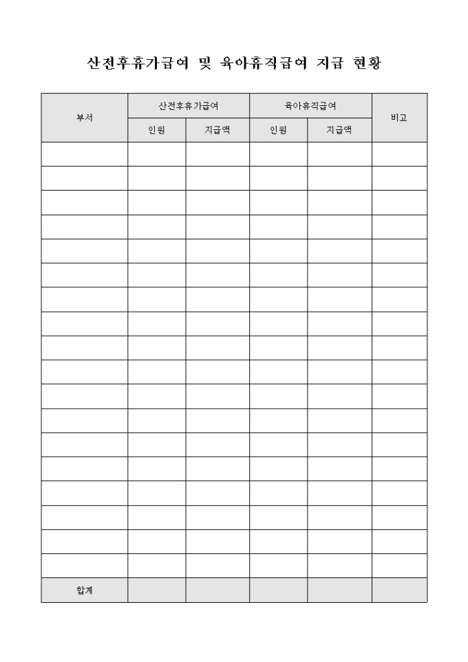 산전후 휴가 급여 및 육아 휴직 급여 지급 현황표