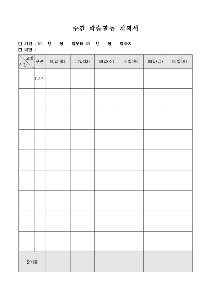 주간 학습 활동 계획서