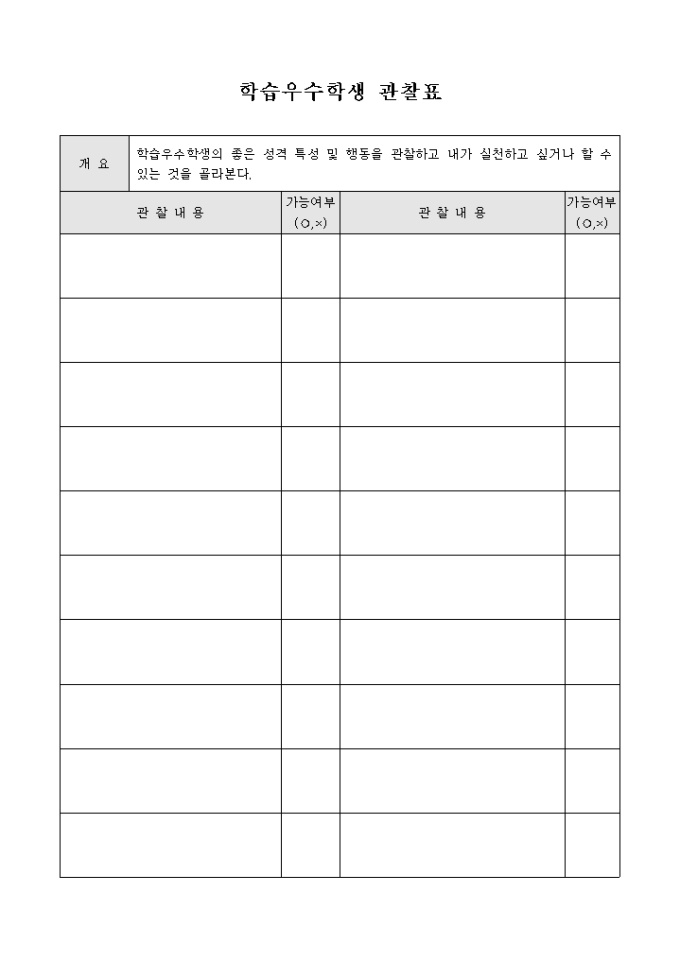 학습우수학생 관찰표
