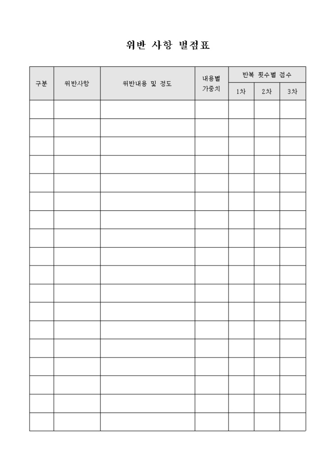 학원 위반 사항 벌점표