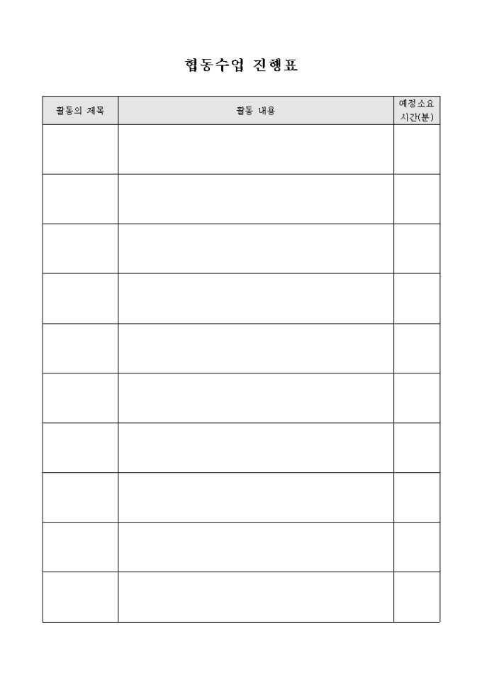 협동수업 진행표