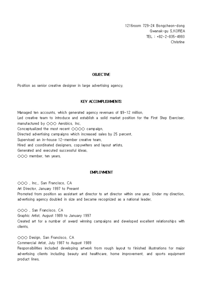 [영문이력서, resume]Senior creative designer(광고기획팀장)_경력