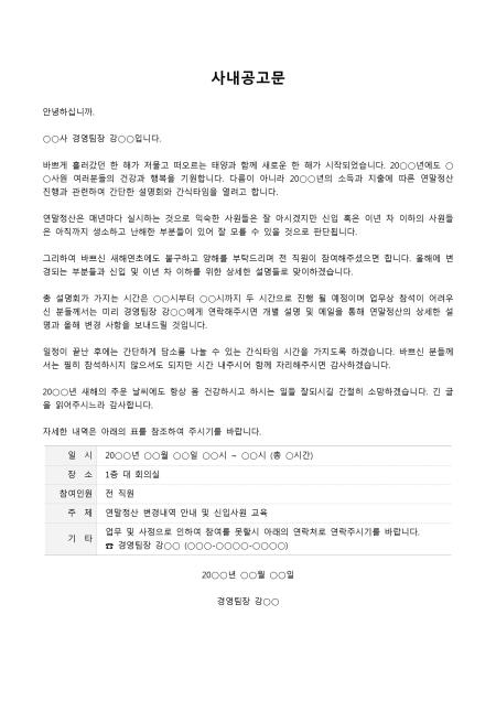 사원 결혼식 공지 멘트 모음