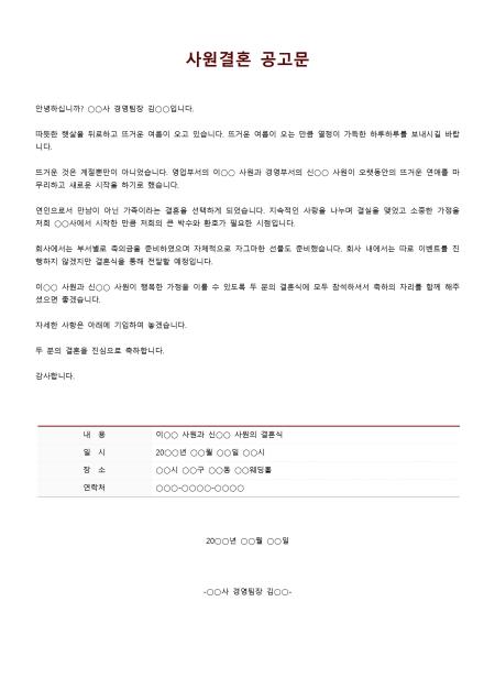 사원결혼공고문