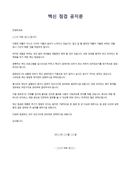 백신점검 공지문