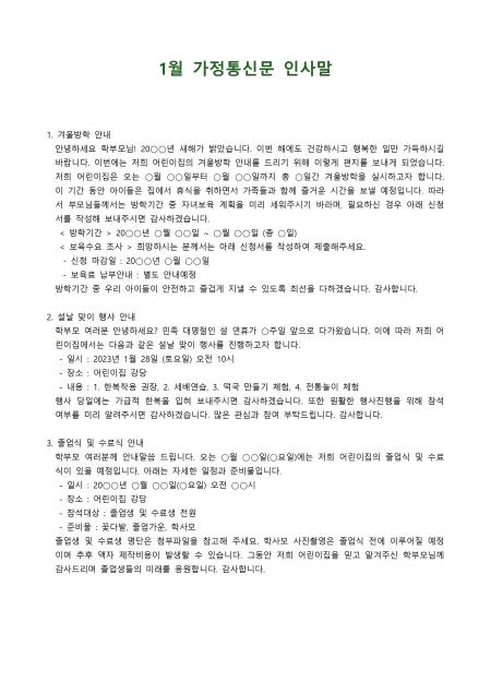 1월 가정통신문 인사말