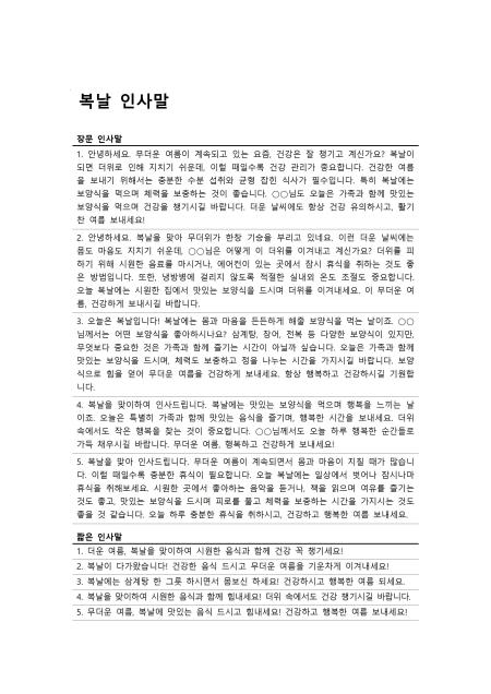 복날 인사말 (초복, 중복, 말복)